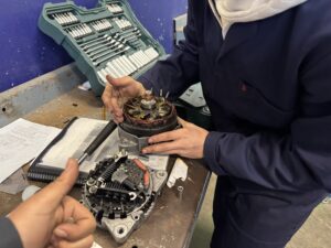 Nuestros alumnos de 1º EMV desmontan y realizan comprobaciones del alternador, el componente encargado de que el vehículo disponga siempre de electricidad.